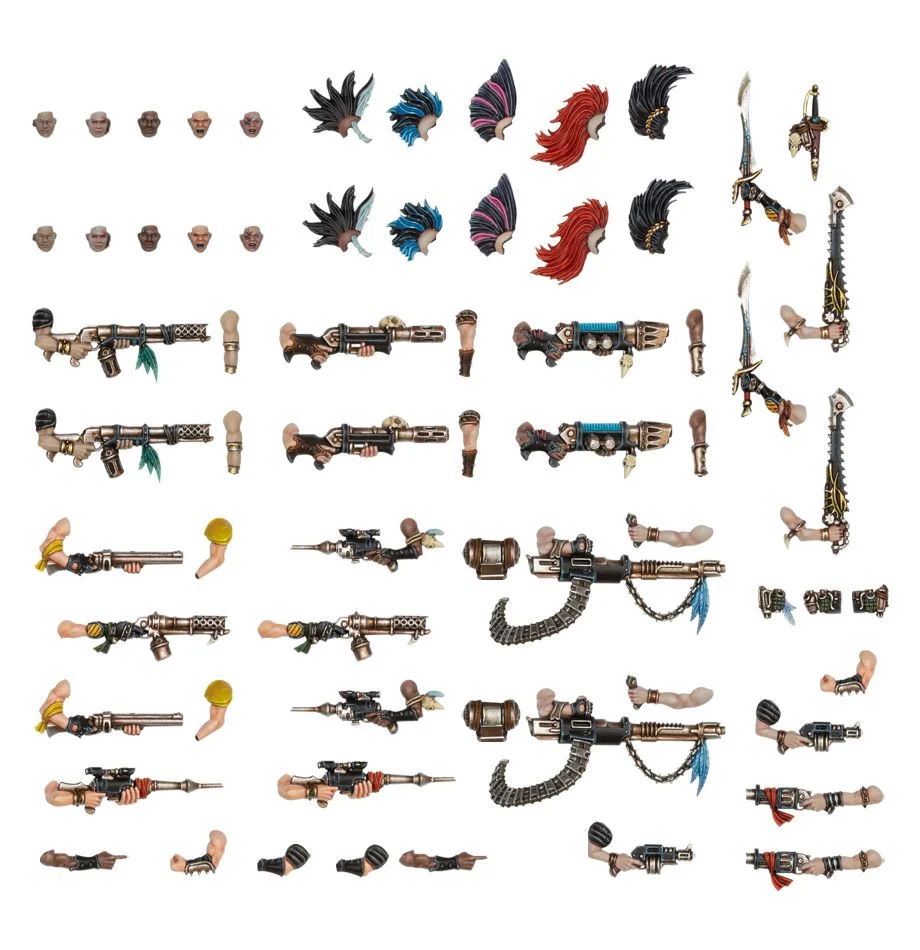 Upgrade your Escher fighters with a selection of death-dealing weaponry allowing you to create a truly unique and formidable gang. Also included in this set are alternate heads and arms, meaning you can personalise your gang even further.
