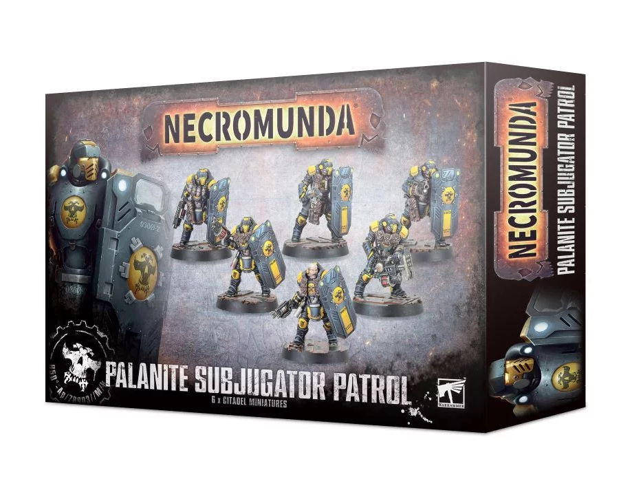 Also included are six 32mm Necromunda round bases and an Enforcer Patrol Transfer Sheet so that you can finish off your models. Rules for using a Subjugator Patrol in games of Necromunda can be found in Necromunda: The Book of Justice and Necromunda: Dark Uprising.